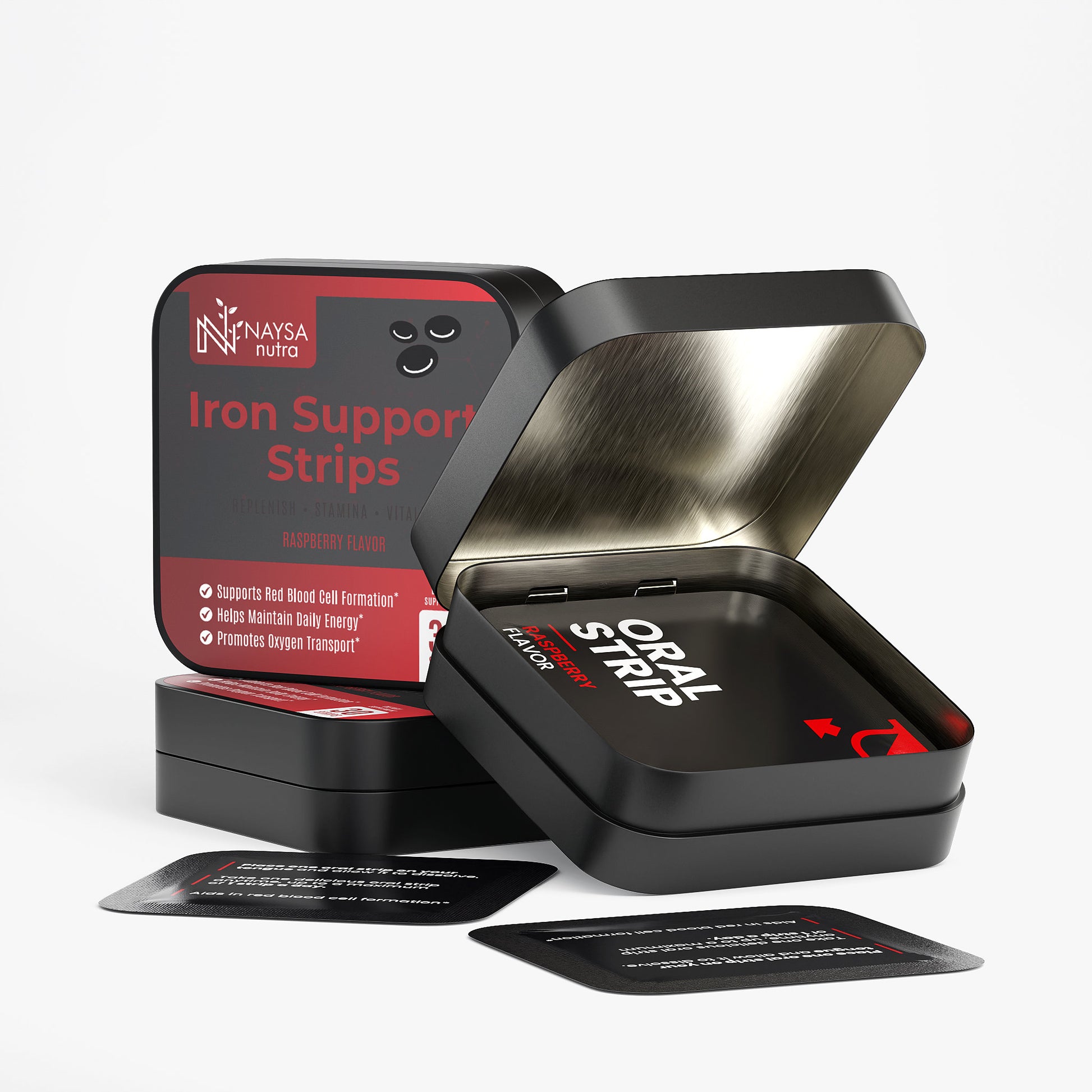 Fast-dissolving raspberry-flavored oral strips melt on your tongue — no water, pills, or prep required, making daily support effortless anytime, anywhere.